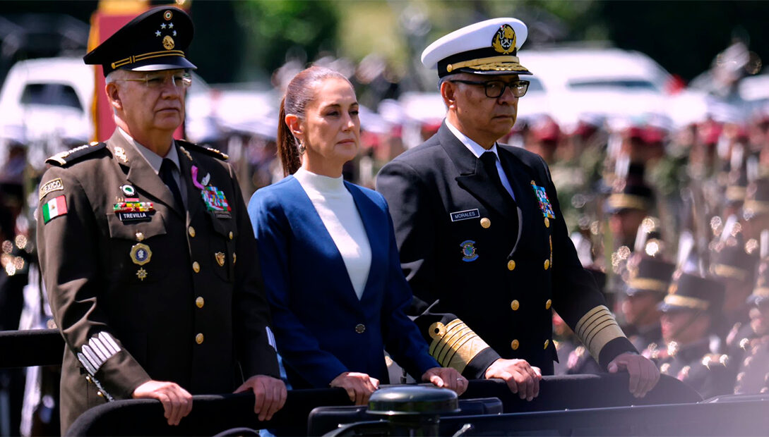 Sheinbaum reafirmó que las fuerzas armadas estarán bajo su mandato y aseguró que nunca emitirá una orden que vulnere los derechos de la población. Asimismo, destacó la participación continua de las fuerzas armadas en grandes proyectos estratégicos, como la construcción de trenes de pasajeros y nuevos puertos. La Presidenta también mencionó una iniciativa en el Congreso que buscará equiparar los salarios de soldados y elementos de la Guardia Nacional con los establecidos por el Instituto Mexicano del Seguro Social (IMSS), como parte de un esfuerzo por mejorar las condiciones laborales de los militares.